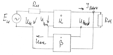 UВХ ООС = UИ + UОС UОС = K×b×UВХ RВХ ООС = RВХ×(1+b×K) Г. Выходное усиление при ООС по U Uвых меньше подвержено изменению при изменении Iвх (т.к. ООС уменьшает нестабильность коэффициента усиления) что соответствует ↓ Rвых Rвых RвыхООС по U = --------------