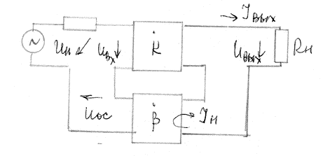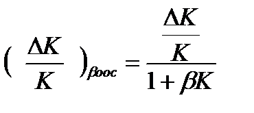 параллельная ОС по U ПОС → Ůвх = Ůист + Ůос ќ = кеJ×j β = β еJ×j φк+φβ = 2πn ООС Ůвх = Ůист - Ůос φк + φβ = (2n +1)π Влияние ОС на основные технические показатели усилителя А. Коэффициент усиления пусть φк ≈ 0 φβ ≈ 0 Uвх = Uи - Uос Uос = β Uвых Uвых к=-------- Uвх Uвых -------- Uвых Uвых Uвых Uвх к Kβ = ---------- = -------------- = ------------------ = ----------------------- = ---------- Uи Uвх + Uос Uвх + β Uвх Uвх Uвых 1+βk ------- + β --------- Uвх Uвх 1+βk = A – глубина ОС βk – петлевое усиление к коос = ----- A к Kβ = --------- - усилитель превращается в генератор т.к. βk < 1; ------------- > 1 Б. Стабильность коэффициента усиления