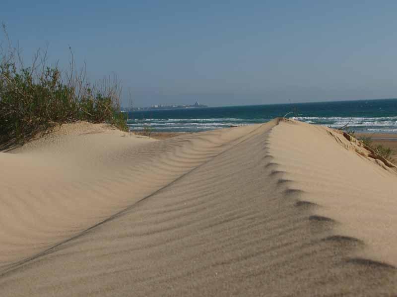 На выровненных побережьях океанов, морей и крупных озер, где происходит принос песка на пляжи волнами, а также на пойменных и древних террасах рек возникают своеобразные формы песчаного рельефа, которые называются дюнами. Дующие в сторону берега ветры подхватывают сухой песок и переносят его в глубь побережья. Отдельные неровности рельефа или кустарниковая растительность задерживают песок и вокруг них образуются отдельные холмики. Постепенно разрастаясь, они объединяются, образуя дюны – холмовидные накопления песка высотой до 20–40 м и более (рис. 31).