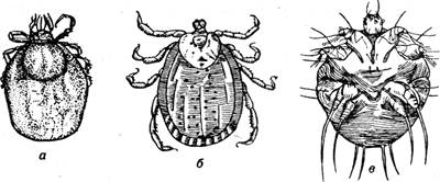 Рис. 3. Кліщі: а – собачий; б– пасовищний; в– коростяний свербун.