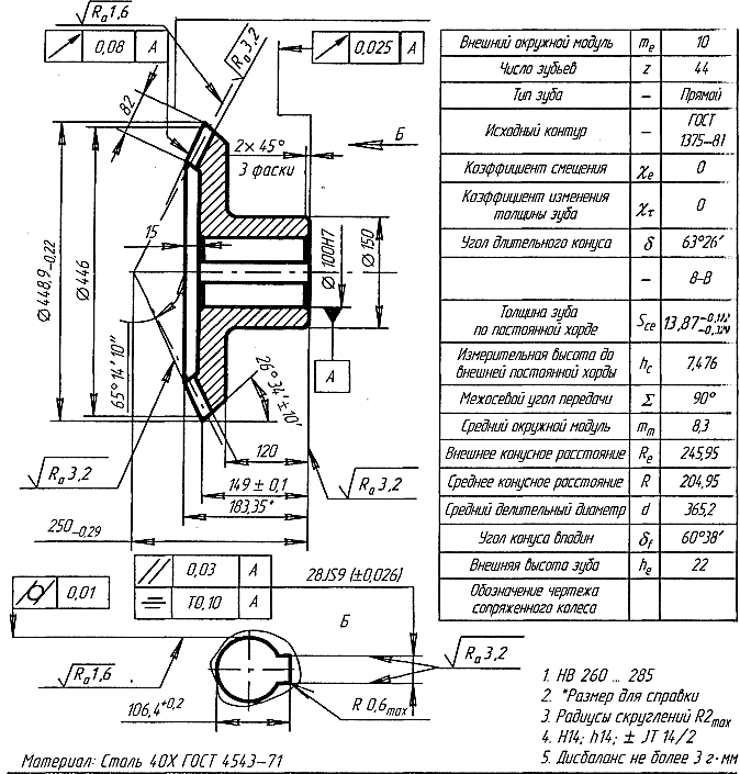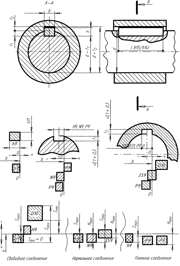 Размерные цепи (окончание) Коническое зубчатое колесо. Шлицевые соединения Шпоночное соединение Соединения с призматическими шпонками Обозначение допусков углов и конусов