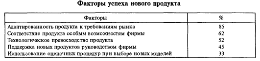 Опросы менеджеров, занимающихся разработкой новых продуктов, выявили следующие основные факторы успеха нового продукта (табл. 11.5). Цифры в таблице указывают процент опрошенных, отметивших важность данных факторов.