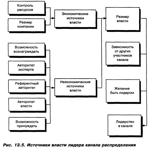 Один из членов канала либо является владельцем других, либо имеет контракты с ними, либо обладает достаточной силой для обеспечения полного сотрудничества. ВМС является частным случаем вертикально-интегрированных хозяйственных систем, которые в сферу своего управленческого воздействия включают также производство и поставку ресурсов, необходимых для ведения производственно-хозяйственной деятельности. Примером являются компании «Шелл» и «ЛУКойл», организующие свою деятельность по принципу «от скважины до бензоколонки». Поскольку усилия отдельных участников ВМС объединены, их маркетинговая деятельность во взаимных интересах может быть скоординирована и в ней исключено дублирование. На рис. 13.4 проводится сравнение обычного канала распределения и ВМС, которая консолидирует маркетинговые функции и деятельность отдельных участников распределительного процесса в целом. Выделяют корпоративные ВМС, договорные ВМС и административные ВМС. В последних согласованность действий обеспечивается за счет авторитета и влияния одного из участников канала. Корпоративная вертикальная маркетинговая система объединяет последовательные стадии производства и распределения под одним владельцем, который осуществляет общее руководство каналом. Например, компании больших продовольственных магазинов имеют мощности по производству льда и мороженого, разливочные линии различных напитков, пекарни; вся эта продукция поставляется в магазины данной компании.