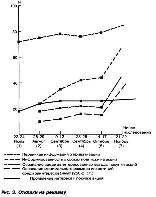 Всего акциями было обеспечено 2 141 647 заявок, 2 127 из которых были заявками организаций. К маю 1985 г. только 450 000 человек продали свои акции, как бы подтверждая исследования, показавшие, что большинство инвесторов сохранят свои акции на длительное время (в 1986 г. число акционеров возросло с 2,5 до 5,3 млн.). Деловой Лондон изменил свое отношение к приватизационной кампании в сентябре. Мрачные предсказания отошли в прошлое. «Обсервер» 18 ноября назвала приватизацию «национальным событием, великолепным примером социального инжениринга, а «Сан» – «блестящим успехом». Рекламная кампания помогла распространить акции широко по стране. Однако совсем не казалось, что возможно превратить сберегателя в инвестора за одну ночь. Мы создали новый класс акций – «народные акции». Акции приватизированной государственной собственности воспринимались общественностью как акции достаточно надежные и с небольшим элементом риска. Эти первые «народные акции» приобретаются, продаются и хранятся по причинам, несколько отличным от тех факторов, которые господствуют на рынке ценных бумаг. Держатели акций «Бритиш телеком» скорее будут руководствоваться эмоциями и, вероятно, будут оставаться их собственниками из-за своего рода апатии, а не по какой-то другой причине. Это достаточно важный новый элемент на рынке ценных бумаг. Вышеописанное отношение к акциям нашло отражение на нашем целевом рынке в том, что как показали результаты исследований, интерес проявлялся не к цене самой акции, а к сумме денег, необходимой для вступления в игру. Именно данный фактор, более чем все остальные, выделяет акции «Бритиш телеком» как продукт, отличный от других продуктов рынка ценных бумаг.