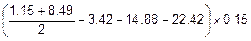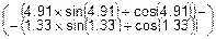 f(x)=3´x5´cos(x3), a=1.1, b=1.7. Решение. Вычислим площадь F= а) по формуле Ньютона-Лейбница: F=FNL= 1-й этап. F(x)= = = = =t´sin(t)- Найдем пределы по переменной t: x=a=1.1, at= 2-й этап. F=FNL= = =ásin(4.91)=-0.98, cos(4.91)=0.20, sin(1.33)=0.97, cos(1.33)=0.24ñ= =(-4.82+0.20)-(1.29+0.24)=-6.15. Итак, FNL=-6.15. Yср=YNL= б) методом Рунге-Ромберга по формуле трапеций. 1. Функцию f(x) на отрезке [a,b] представляем таблицей {xti,yti} объемом n=4. h= xt0=a=1.10, xti=xti-1+h, i= yti=f(xti), i= Результат нашей работы показан ниже.