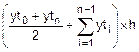 2. Вычисляем значение определенного интеграла по формуле трапеций на шаге h: Fh= = 3. Оставляем в таблице отсчеты с четными номерами i, заново их нумеруем (j). Теперь объем таблицы равен n2= F2h= = 4. Вычисляем поправку Рунге и значение определенного интеграла по формуле Рунге-Ромберга: PR= 5. Проверяем условие ïFNL-FRRï<ïPRï: ïFNL-FRRï=0.03<ïPRï=0.79. Находим Yср=YRR= Оцениваем относительную погрешность для Yср: