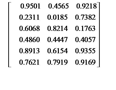 Например: A=rand(6, 3). По умолчанию в качестве элементов матрицы используются вещественные числа.
