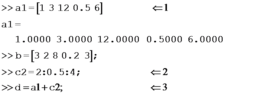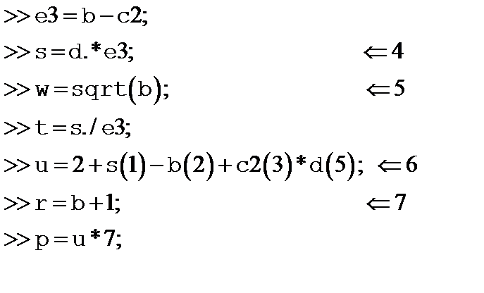 а) »x=[0.5 0.7 1]; Y=sin(x) % Комментарии размещаются в отдельных строках Y = б) » x=[23 45 67 45] x=[23 45 45] в) » x=[23 45 67 45]
