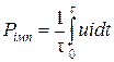 де u, i, p – відповідно миттєві значення напруги, струму та потужності. У випадку, коли струм і напруга є синусоїдними функціями часу, активну потужність розраховують за виразом