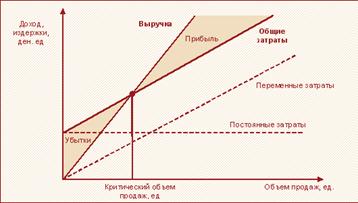 Точка безубыточности – это минимальный объём производства и реализации продукции, при котором расходы будут компенсированы доходами. Расчет точки безубыточности требует разделения совокупных затрат на постоянные и переменные. В теории переменные затраты – возрастают пропорционально увеличению производства (объему реализации товаров). Постоянные затраты – не зависят от количества произведенной продукции (реализованных товаров) и от того, растет или падает объем операций. Степень превышение объемов продаж над точкой безубыточности определяет запас финансовой прочности предприятия.