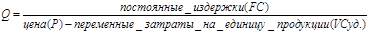 Расчет точки безубыточности
