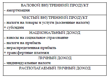 ВНД –сумма первичных доходов, полученных резидентами данной страны за тот или иной период. ВНД=ВВП + сальдо первичных доходов из-за границы ( доход резидентов – доход нерезидентов) ВНРасполагаемыйД = ВНД + трансферты, полученные из-за рубежа +трансферты переданные за рубеж) – трансферты, переданные за рубеж ВНРД = конечное потребление + национальные сбережения Чистый ВП (ЧВП) =ВВП – ПОК (потребительский капитал) Чистый НД (ЧНД) =ВНД – ПОК НД ( с 1993 г. его не считают ) = ЧНД – косвенные налоги НД= Фонд потребления(75%) + фонд накопления(25%) ФП – часть НД, обеспечивающая удовлетворение материальных и культурных потребностей людей и общества в целом ФН – часть НД, обеспечивающая развитие производства Производственный НД – это весь объем вновь созданной стоимости Использованный НД это производственный НД за минусом потерь (стих. бедствий, ущерб при хранении) ЛД = ЧНД – косвенные налоги – взносы на соц. страхование – нераспределенная прибыль корпораций – налог на прибыль + трасферты + личные доходы в форме процентов ЛРД = ЛД – индивидуальные налоги = потребление + сбережения