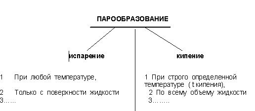 Одновременно учителю необходимо показать на экране обычный Word и обратить внимание учащихся на панель «Автофигуры» в нижнем левом углу – там выполняются те же самые операции! (10-12 мин) ! Сохранить документ! Далее ребята должны вспомнить отличия этих двух процессов (испарения и кипения), можно посмотреть в тетради по физике. Учитель выписывает на доске, ребята вспоминают физику, приводят примеры. (5-7 мин) Когда на доске все записано, учащиеся переносят материал в свой файл и ставят (сами) разделительную вертикальную черту.