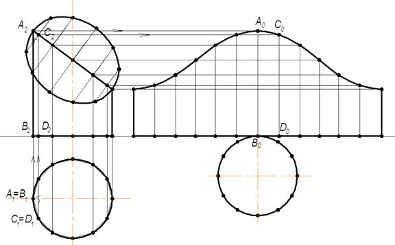 Рисунок 1.5.8 – Развертка цилиндрической поверхности способом «нормального сечения»