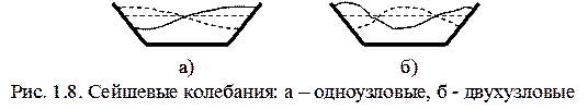 где Например, для Второй фактор: вызывая барическое повышение уровня воды, циклон возбуждает собственные колебания воды - сейши в заливах, бухтах (для возбуждения собственных колебаний важно наличие границы вода – берег). Эти колебания представляют собой стоячие волны (рис. 1.8).