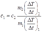 Поделив одно уравнение на другое, получим Отсюда где m 1 = r1 V – масса первого образца; m 2 = r2 V – масса второго образца. Зная теплоемкость с 1 образца, можно найти и его молярную теплоемкость С m = m× с. (7)