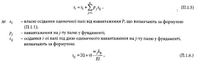 П.1.1 Осідання одиночної палі s1 під дією вертикального навантаження Р (рисунок П.1.1) визначають за формулою: