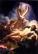 Характерный пример - картины барона Пьера-Нарcиса Герена (1774 -1833) "Аврора и Кефал" (1810, Лувр, рис.25) и "Морфей и Ирида" (1811, Эрмитаж), где к свободно раскинувшемуся спящему прекрасному нагому юноше с неба спускается и любуется им богиня (практически это варианты одной и той же картины). Здесь все работает на эффект "себастьянизации". Активная, субъектная роль целиком отдана женщине: она старше, она богиня, она одета, она смотрит, тогда как юноша просто "является", отдается взгляду богини и потенциального зрителя-мужчины. В центре внимания зрителя оказывается при этом не женщина, а юноша, c его откровенно зовущей соблазнительной наготой.