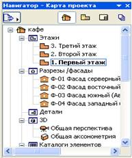 В палитре Navigator (Навигатор) проектируемое здание состоит из трех этажей.
