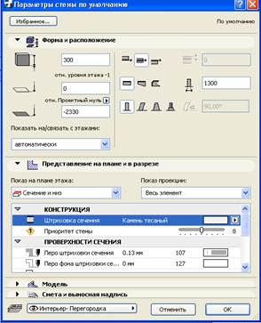 Создайте внутренние несущие стены. На информационной панели щелкните на кнопке Settings Dialog (Установка параметров).