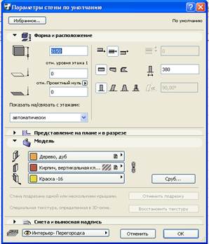 В области Model (Модель) выберите для внутренних и наружных поверхностей стен (верхняя и нижняя кнопки) покрытие Wd-Oak (Дуб). Щелкните ОК.