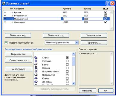 Выполните команду меню Design – Story Settings (Конструирование – Установка этажей.)