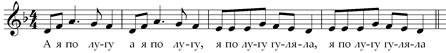 Гласный звук «и» дает мягкость, головное резонирование, способствует прикрытию,упражнение исполняется в единой звуковой позиции. 3. В.Красев «Дудочка»