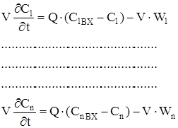 _ _ Рівняння кінетики: W1 = k1 × f1(C1) ….. Wn = kn × fn(C) 2. 1. 3. Дослідження моделі РІЗ