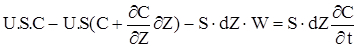 Складемо порівняння матеріального балансу для виділеного елементарного прошарку за одиницю часу dt.