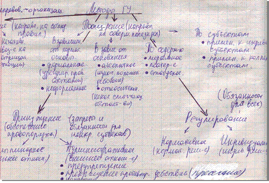 Классификация методов ГУ I. 1) административные методы ГУ. Характеризуются: - прямым воздействием на волю, - приказным характером, - однозначностью указаний, - наличием контролирующего аппарата, - использованием мер принуждения. 2) экономические (косвенные) методы ГУ. Характеризуются: - косвенным воздействием на волю, - созданием ситуации, которая заинтересовывает в должном поведении, - управленческие акты дают право поступать определенным образом, - у подвластных есть возможность выбора наиболее целесообразного варианта поведения, - использованием мер стимулирования.