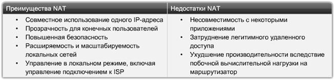 NAT позволяет большой группе частных пользователей получать доступ в Интернет, совместно пользуясь одним или несколькими публичными IP-адресами. Эта система работает примерно так же, как телефонная система внутри компании. По мере того, как численность персонала компании растет, сотрудники перестают подключаться непосредственно к публичной телефонной линии. Вместо этого каждому сотруднику компании присваивается добавочный номер. Это возможно потому, что не все они одновременно пользуются телефоном. Использование частных добавочных номеров позволяет организации закупать у телефонной компании меньшее число внешних телефонных линий. NAT работает примерно так же, как телефонная система компании. Одна из основных причин создания NAT - возможность сэкономить зарегистрированные IP-адреса. Кроме того, NAT обеспечивает безопасность компьютеров, серверов и сетевых устройств, блокируя непосредственный доступ в Интернет с реального IP-адреса узла.
