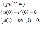 Предположим, что стержень жестко зажат на левом конце (в точке x=0), а правый конец (в точке x=1) шарнирно закреплен на опоре.В силу принципа Лагранжа, реальная деформация стержня