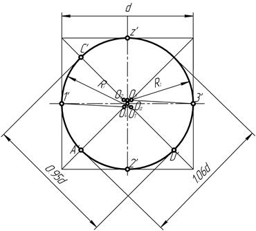 Диметрической проекцией окружности является эллипс (лекальная кривая), но для простоты построения изображают овал (циркульная кривая), рис. 122. При построении точной проекции с коэффициентами искажения 0,94 и 0,47: – в плоскости XOZ большую ось эллипса следует брать равной диаметру изображаемой окружности, а малую ось – равной 0,9 диаметра; – в плоскостях XOY и YOZ большую ось эллипса также следует брать равной диаметру, а малую ось – равной 0,33 диаметра.