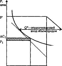 Увеличение прибыли ' вследствие увеличения продаж при ограничивающем вход ценообразовании