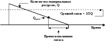 Рис. 6.8. Изменение запасов по времени: Q ДМУЗ – допустимый минимальный уровень запасов