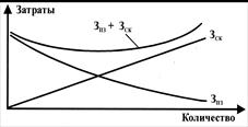 Рис. 7.8. Определение оптимального объема заказа: З ск – затраты на складирование; З пз – затраты на получение заказа