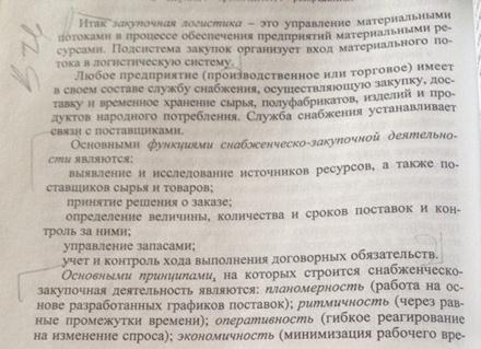Наиболее известным способом определения величины заказа является классический метод, разработанный Андлером (рис. 7.8). Этот метод основан на том, что, с одной стороны, затраты на заказ являются постоянными и поэтому, при увеличении объема заказа, они снижаются на каждую партию, а, с другой стороны, существует линейная зависимость между затратами на складирование и объемом получения. Следовательно, критерием оптимизации размера заказа на пополнение запасов может быть минимум общих затрат на выполнение заказов и под-держание запаса сырья или готовой продукции на складе в течение планового периода (года). Допустим, что годовая потребность предприятия в сырье (спрос на выпускаемую продукцию) равна Q общ. Тогда за год необходимо сделать n = Q общ/ q 3 – поставок на по-полнение запаса, где q 3 – величина разового заказа. Затраты ( где С 3 – стоимость подачи заказа (затраты на единицу заказа). Затраты хранения (поддержания) запаса (С скл) на складе в течение года: где С к – цена единицы продукции, хранимой на складе (затраты на количество); i – доля от цены, приходящаяся на затраты по поддержанию запасов. Средняя величина запаса составит Суммарные годовые затраты ( Оптимальный объем заказа определяется из выражения Итак, оптимальный объем заказа В теории управления запасами она известна как формула Уилсона, хотя была получена Ф. У. Харрисоном еще в 1913 г. 24. Модели управления запасами (Q-модель, Р-модель). (Q)Методика заказа с твердо установленным количеством заказанного применяется таким образом, что сумма затрат на запас плюс сумма затрат на заказ должны быть минимальными. Под затратами на заказ в случае закупок понимаются затраты на персонал покупателя и затраты на административную обработку заказа при получении оплаты. Под затратами на заказ на производство продукции понимаются затраты при начале производства продукции, затраты на персонал, занятый планированием и подготовкой работы, и затраты на административную обработку заказа. На практике довольно сложно выразить все эти затраты количественно. Чем выше количество заказанного, тем выше серийный запас и тем выше затраты на запас. Однако верно и другое: чем выше количество заказанного, тем меньше заказов размещается, тем ниже общая сумма затрат на заказ. Величина заказанного, при которой затраты минимальны, называется экономическим заказом количества (см. формулу 7.6). Методика заказа применяется в отношении товаров, на которые текущий спрос определить нельзя, но наличие которых на складе имеет важное значение. Применяется также в отношении дешевых универсальных товаров, затраты на запас которых ничтожны (невысокая рента, небольшой риск и небольшое пространство). Применяется также в отношении товаров, потребность в которых сложно отделить от потребности в конечной продукции (навалочные грузы). Управление по модели с фиксированным периодом между заказами или P-модель в среднем имеет больший запас, так как наличие материальных ресурсов должно быть достаточным до момента следующей поставки через фиксированный период времени при возможном изменении скорости расходования товара. 26. Закупочная логистика. Функции, принципы и основные вопросы снабженческо-закупочной деятельности.