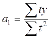С целью упрощения расчетов показателям времени t придают такие значения, чтобы их сумма была равна 0. Тогда уравнения параметров примут следующий вид: