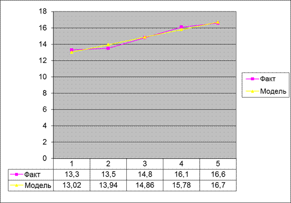 Для линейной зависимости (f(t)=a0+a1t) параметр а0 обычно интерпретации не имеет, но иногда его рассматривают как обобщенный начальный уровень ряда; а1 - сила связи, т.е. параметр, показывающий, насколько изменится результат при изменении времени на единицу. Таким образом, а можно представить как постоянный теоретический абсолютный прирост. Построив уравнение регрессии, проводят оценку его надежности. Это делается посредством критерия Фишера (F). Фактический уровень (Fфакт) сравнивается с теоретическим (табличным) значением: