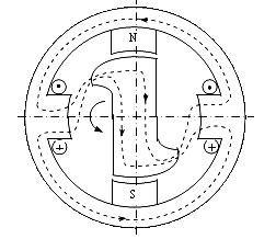 Вопрос №52 Шаговые двигатели. Шаговые двигатели – это электромеханические устройства, преобразующие сигнал управления в угловое (или линейное) перемещение ротора с фиксацией его в заданном положении без устройств обратной связи. Двухполюсный ротор из магнитомягкой стали с выступами помещен в четырехполюсный статор. Одна пара полюсов выполнена из постоянных магнитов, на другой – находится обмотка управления.Пока тока в обмотках управления нет, ротор ориентируется вдоль постоянных магнитов и удерживается около них с определенным усилием, которое определяется магнитным потоком полюсов Фпм. При подаче постоянного напряжения на обмотку управления возникает магнитный поток Фупримерно вдвое больший, чем поток постоянных магнитов. Под действием электромагнитного усилия, создаваемого этим потоком, ротор поворачивается, преодолевая нагрузочный момент и момент, развиваемый постоянными магнитами, стремясь занять положение соосное с полюсами управляющей обмотки. Поворот происходит в сторону клювообразных выступов, т.к. магнитное сопротивление между статором и ротором в этом направлении меньше, чем в обратном.