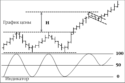 Для определения перекупленности или перепроданности рынка для каждого осциллятора устанавливаются определенные критические уровни. Пересечение осцилляторами этих уровней и говорит Вам о том, перекуплен рынок или перепродан, а также о том, что возможен скорый разворот цен. Рынок, на котором цена и осциллятор, движутся в одном направлении и имеют сходные вершины и основания, называют сонаправленным. Такой ход событий мало помогает трейдеру, хотя и подтверждает сохранение текущей тенденции.