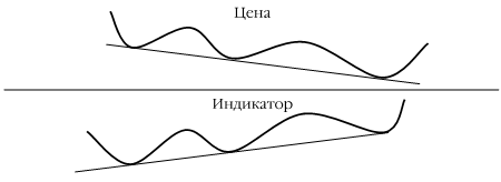 Если в ходе нисходящего тренда на ценовом графике наблюдается новый минимум, лежащий ниже предыдущего, а на графике осциллятора нового минимума нет, или он расположен выше предыдущего, то это также сигнал к возможному завершению тренда. Данный сигнал называют бычьим схождением или конвергенцией.