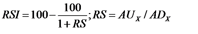 где: AUX - среднее значение закрывшихся выше предыдущих цен за определенный период; ADX - среднее значение закрывшихся ниже предыдущих цен за определенный период; x - заданное количество периодов усреднения.