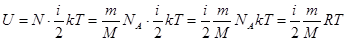 где Для одноатомного газа i = 3, для двухатомного i = 5, для трех (и более)атомного i = 6. Изменение внутренней энергии идеального газа