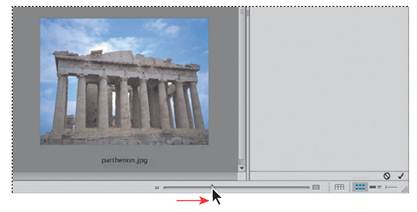 6 Double-click the parthenon.jpg thumbnail in the Content panel to place the file in your After Effects project. Alternatively, you can drag the thumbnail into the Project panel in After Effects.