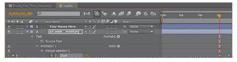 You still have a lot of animation to do in this composition, so you will speed up the effect by 1 second. 8 Go to 6:00, and then drag the second Range Selector 1 Start keyframe to 6:00.