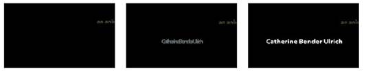 5 Drag the current-time indicator across the time ruler between 7:10 and 8:10 to see the letters of the director’s name fade in as they spread out.