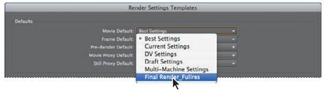 7 At the top of the dialog box, in the Defaults area, choose Final Render_Fullres for Movie Default. Then click OK to close the dialog box.
