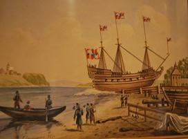 Первая попытка в этом направлении была сделана в XVII веке. В Нижнем Новгороде был заложен корабль, строившийся 50 русскими плотниками. Корабль был построен "из сосновых досок", с плоским дном. Он имел около 38 м длины и 12,5 м ширины. Корабль двигался при помощи парусов, а при отсутствии ветра мог идти на веслах (он имел 12 пар весел, по два гребца на весло). Вооружение его состояло из нескольких пушек.