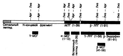 Рис. 325-3. Схематическое изображение вероятной структуры молекулы проопиомеланокортинасмол.массой 31 000. (По D. Т. Krieger,J. В. Martin, N. Engl.J. Med., 304:880, 1981. С разрешения New England Journal of Medicine.)